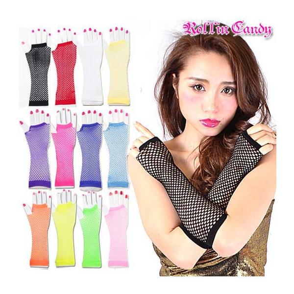 ダンス衣装・ステージ衣装に! シームレスネットフィンガーレスグローブ(両手2個セット)/アームウォーマーキッズOKダンサーメッシュ手袋ネオンカラー発表会蛍光色