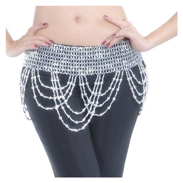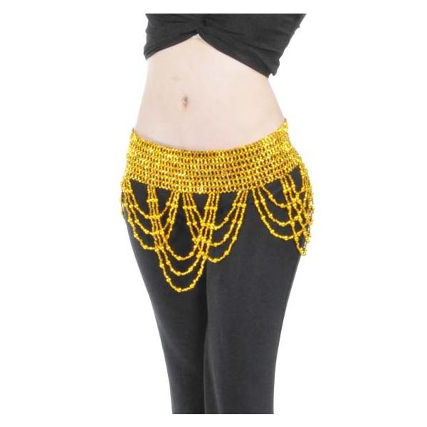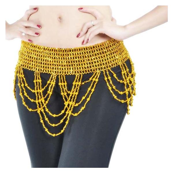 ダンス衣装・ステージ衣装に☆ビーズフリンジ ヒップスカーフ/ヒップベルト ゴールド シルバー ベリーダンス 衣裳 ゴムベルト 舞台衣装 発表会