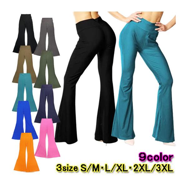 超ストレッチ!無地 カラー フレアパンツ ブーツカット ベルボトム ハイウエスト 無地パンツ パンタロン ロングパンツ ヨガパンツ レディース ダンス 衣装 衣裳
