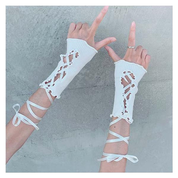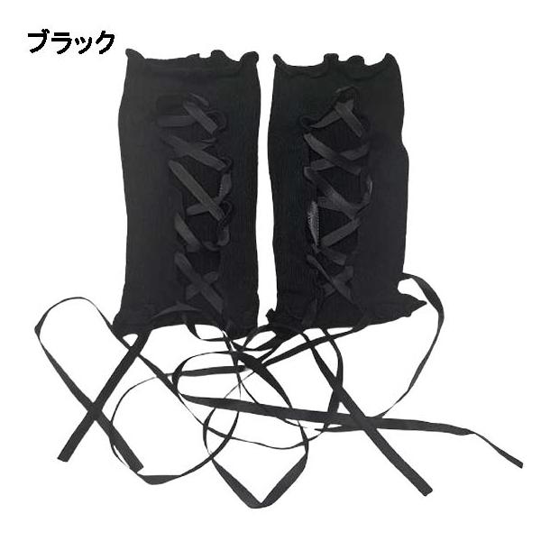 リブ 編み上げ アームグローブ/アームカバー/アームウォーマー/手袋 ショートグローブ フィンガーレス ロリータ ゴスロリ 衣装 ダンス 衣裳 レディース 黒 白