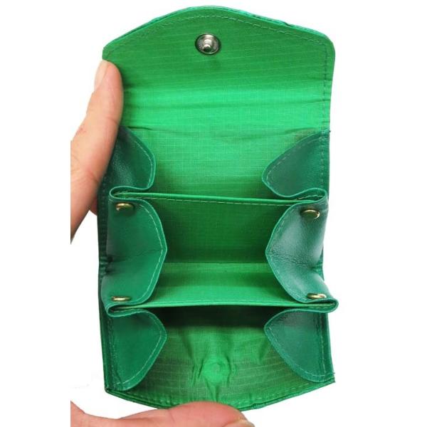 中は仕切りで3つに分かれており、小銭はもちろん、アクセサリーや薬を持ち運ぶのにもピッタリ♪