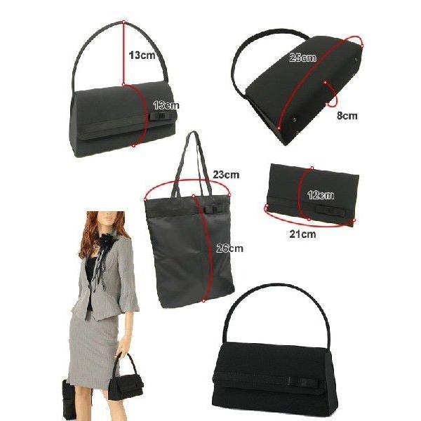 フォーマルバッグ 黒 レディース リボン 入園式 入学式 卒園式 卒業式 ブラックフォーマル3点セット (ハンドバック+折りたたみトートバック+袱紗)