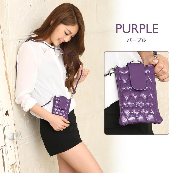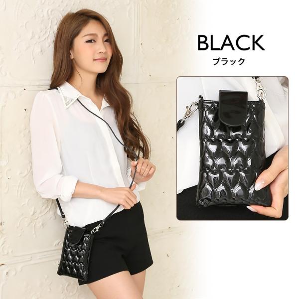 セール スマホポーチ レディースショルダーポーチ スマホケース ポシェット斜め掛けミニバッグ ガジェットポーチ エナメルハートマーク仕様