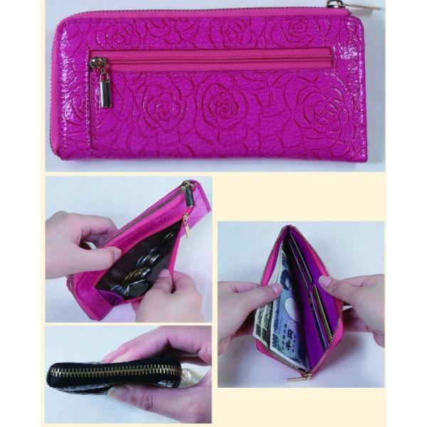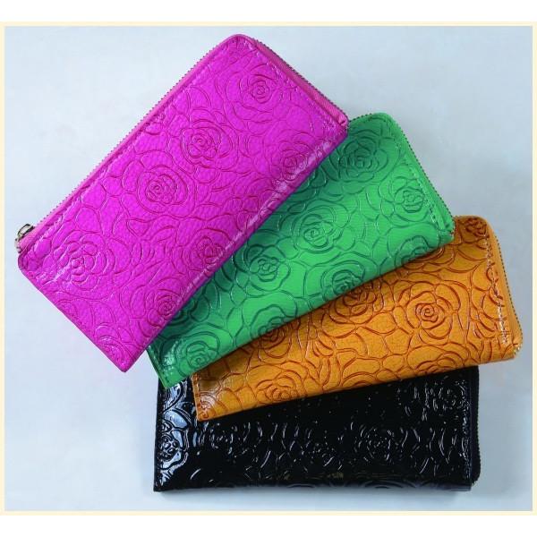 長財布 革 レディース 薄型 コンパクト 小銭入れ付き ラウンドファスナー 花柄 メール便可