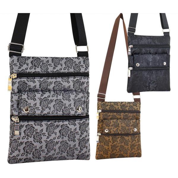 ミニショルダーバッグ レディース ポシェット スマホバッグ アヤメ柄 薔薇柄のジャガード ショルダーポーチ