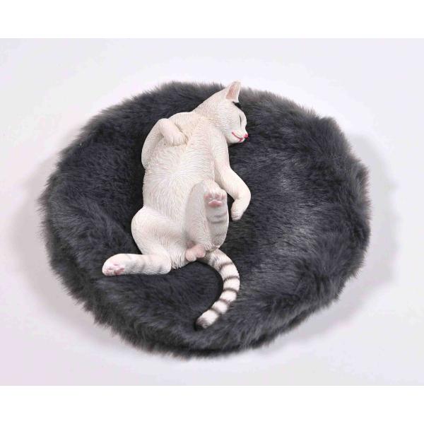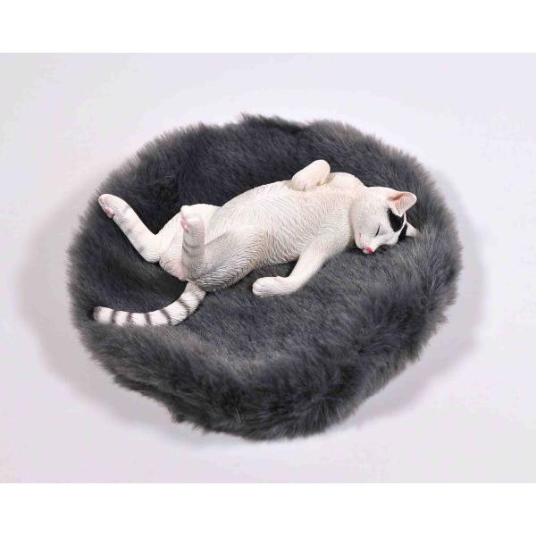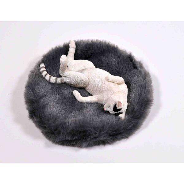 クッションで眠る、白猫 リアルフィギュア ネコ動物彫像