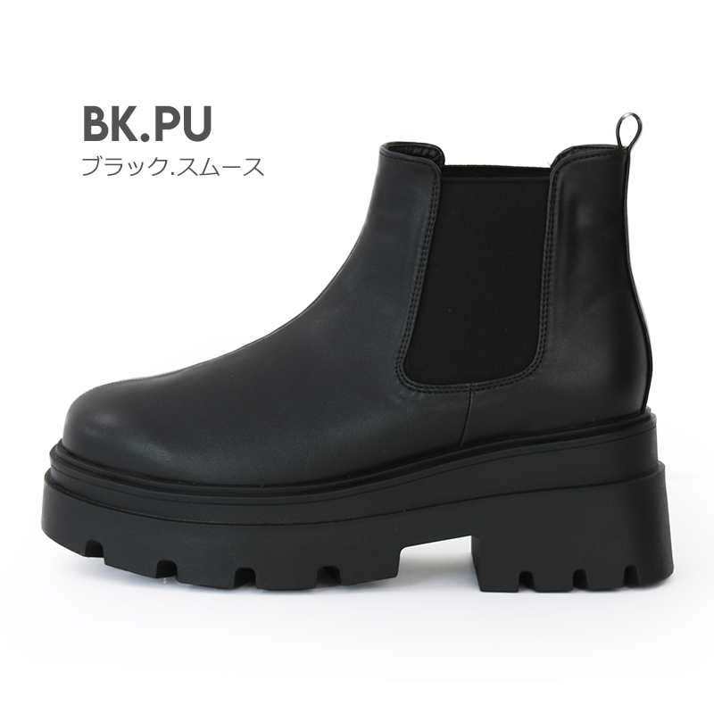【爆買】厚底 ショートブーツ レディース サイドゴアブーツ 黒 チェルシーブーツ kk-18015