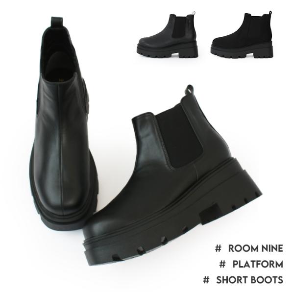 【爆買】厚底 ショートブーツ レディース サイドゴアブーツ 黒 チェルシーブーツ kk-18015