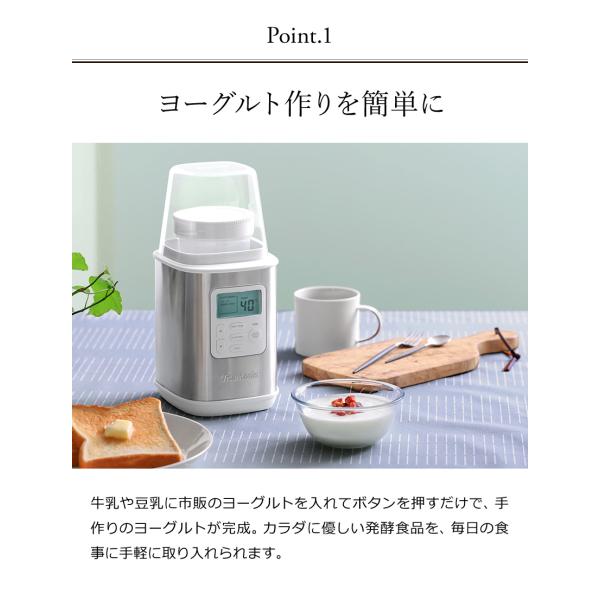 材料をセットしてボタンを押すだけで、自家製ヨーグルトが出来上がる『 Vitantonio( ビタントニオ )ヨーグルトメーカー 』。プレーンヨーグルト、豆乳ヨーグルト、のむヨーグルト、甘酒、塩麹がワンボタンで簡単に作れます。牛乳や豆乳を1Lパックのままで調理でき、加熱温度や調理時間が細かく設定できるのも◎。低温調理もおまかせで、ローストビーフや温泉卵、発酵バターなどが載ったレシピブックが付いています。
