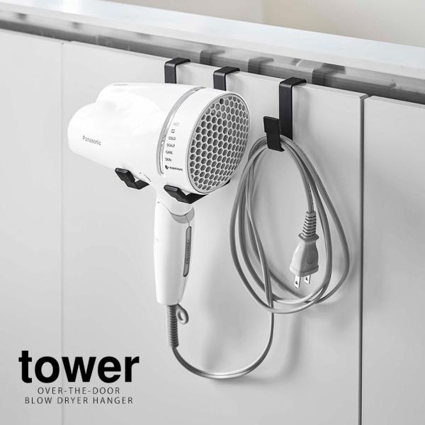 [ ドライヤーハンガー タワー ]山崎実業 tower ホルダー 収納 洗面 スタンド ドライヤー 入れ 置き フック yamazaki 公式 ホワイト ブラック 5385 5386