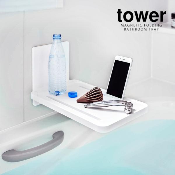 [ マグネットバスルーム折り畳み棚 タワー ]山崎実業 tower 浴室 テーブル バスタブ 棚 ラック 折りたたみ yamazaki 公式 ホワイト ブラック 5532 5533