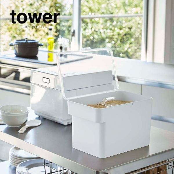 [ 密閉 シンク下米びつ 5kg 計量カップ付 タワー ]山崎実業 tower 米びつ 冷蔵庫 スリム 米 収納 保存容器 密閉 米櫃 5キロ 野菜室 シンプル 3377 3378