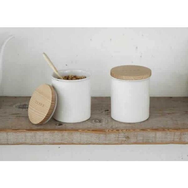 清潔感のあるホワイトと天然木のフタの組み合わせが上品な『 tosca( トスカ )陶器キャニスター 』。出番の多い塩、砂糖、コーヒー豆のほか、茶葉やナッツ、乾物などを日光に当てずに保存したい時におすすめです。フタの内側にはシリコンパッキン付き。ほどよいフィット感なので、強く力を入れなくても開閉はスムーズ。見えるところに置きたくなるような北欧風デザインで、キッチンをカフェスタイルに演出してくれます。