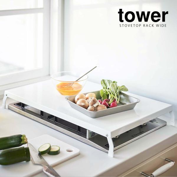 [ 折り畳みガスコンロカバー タワー ワイド ]山崎実業 tower 幅52cm 折り畳み ガスコンロ カバー コンロ上 コンロ用 作業台 yamazaki 公式 4922 4923