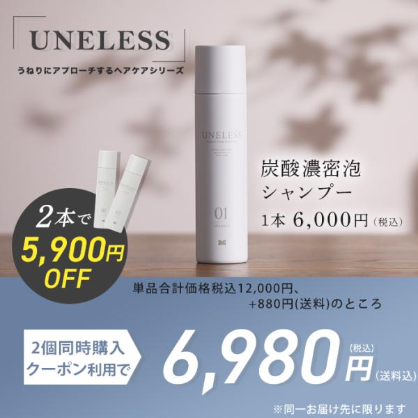【2個同時購入クーポンで5900円引】UNELESS ウネレス 炭酸シャンプー 通販スクープ テレビ朝日 テレ朝通販 ロッピング スカルプシャンプー