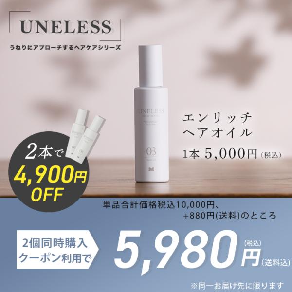 【2個同時購入クーポンで4900円引】UNELESS ウネレス ヘアオイル 通販スクープ テレビ朝日 テレ朝通販 ロッピング
