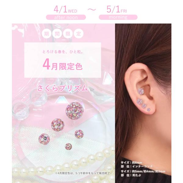 キャッチ ボディピアス 18G 16G 14G 12G 対応 キラキラ×オーロラ コーティングパヴェキャッチ 3mm/4mm/5mm/6mm(1個売り)(オマケ革命)