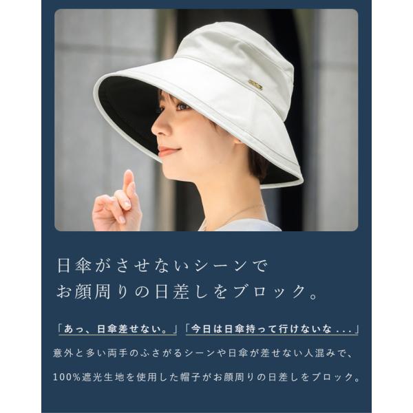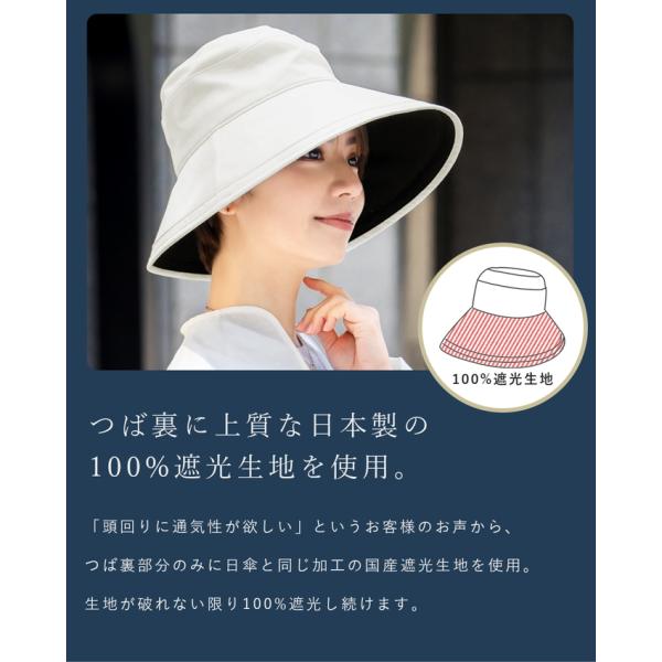 ハット レディース uv 100%完全遮光 プレーン(つば裏遮光/通気性あり)つば広 おしゃれ ハット 13cm 各サイズ 日よけ帽