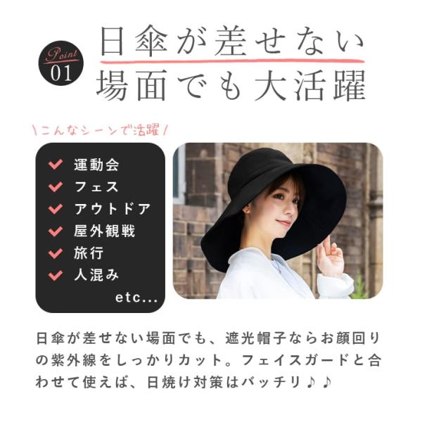 ハット レディース uv 帽子 完全遮光 日焼け防止 ワイドブリム つば裏遮光 通気性あり ハット UVカット つば広