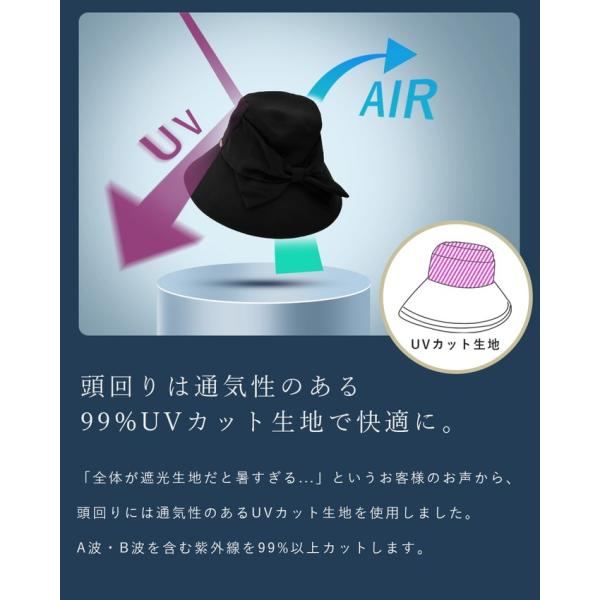 完全遮光 帽子 レディース クロスリボンハット つば広 UVカット おしゃれ 通気性あり 接触冷感 撥水 制菌