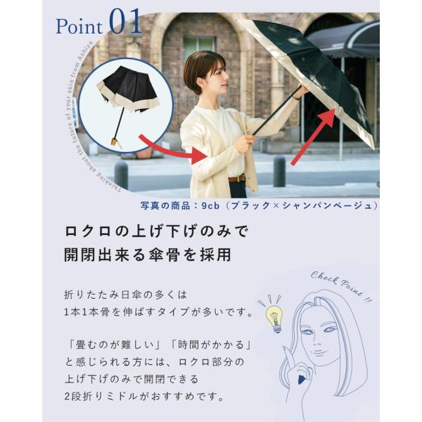 日傘 完全遮光 折りたたみ uv 晴雨兼用 軽量 1級遮光 涼しい おしゃれ 3段 遮熱 折りたたみ傘 遮光 コンビ 50cm (傘袋付)