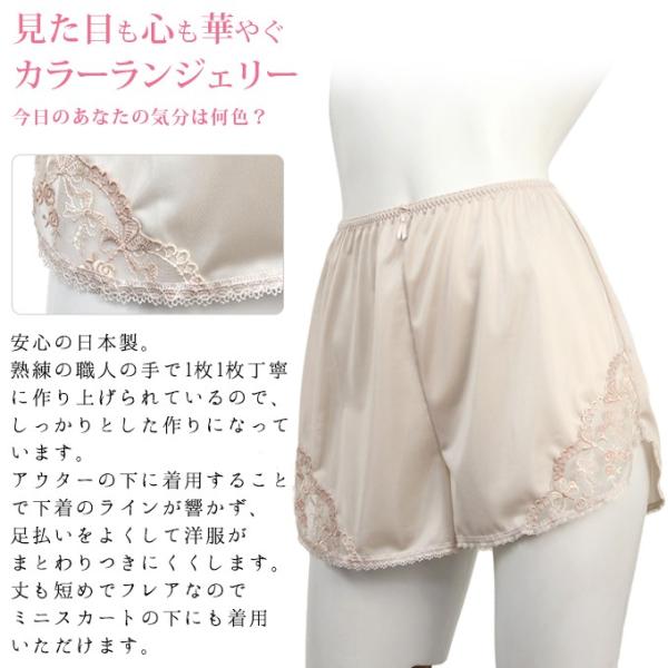 カラー ペチコート パンツ ランジェリー レディース パンツ サテン 股ずれ防止 インナー ボトムス ボトム 日本製 チュール フレアーパンツ 大きいサイズ mail