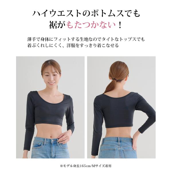 みぞおちくらいのショート丈なのでトレンドのクロップド丈トップスのインナーにぴったり。