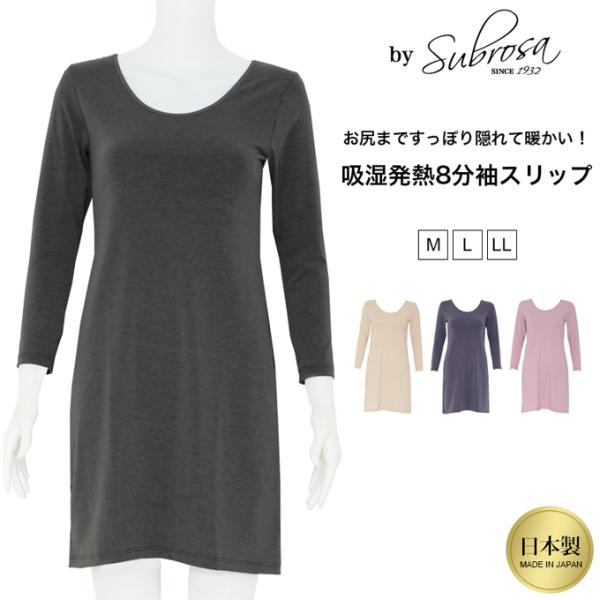 日本製 暖かい 吸湿 発熱インナー スリップ ワンピース インナー 長袖 8分袖 インナーワンピース 下着 レディース インナーシャツ ペチコートあたたかい mail