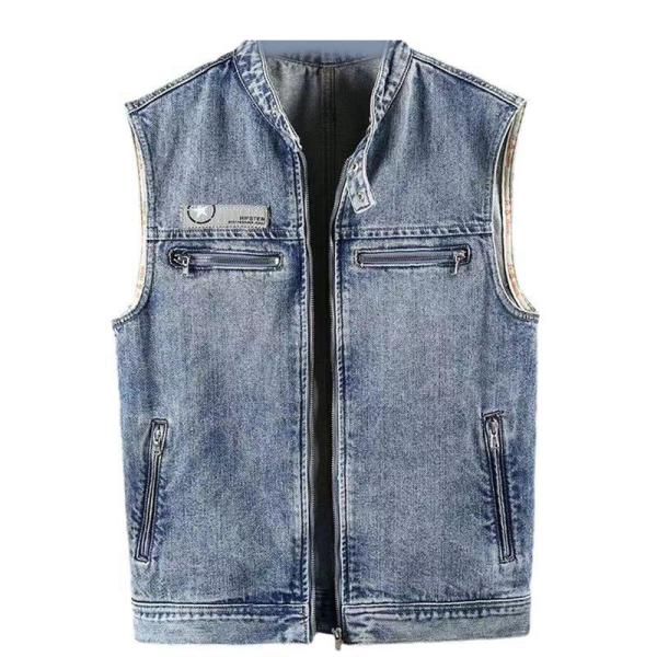 ベスト デニム メンズ Gジャン 無袖ジャケット ジレ マウンテンベスト ルーズ 柔らかい 四季通用 大きめポケット 復古 バイカー 無地