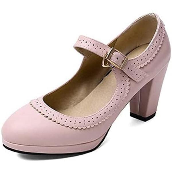 メリージェーンオックスフォードパンプス ラウンドトゥピアスミッドヒールオックスフォード ドレスシューズ レトロな厚底ロカビリーシューズ