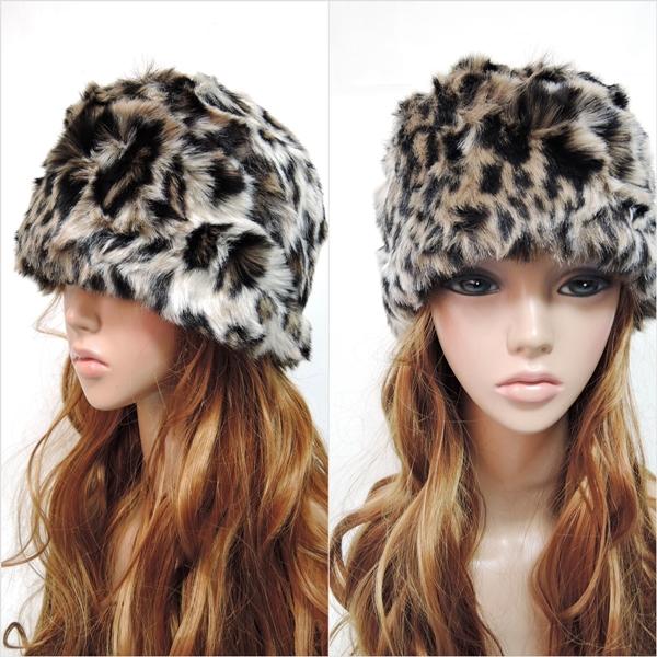 ロシア帽 レディース 帽子 ファー レオパード ヒョウ柄 無地 ロシアンハット 秋冬