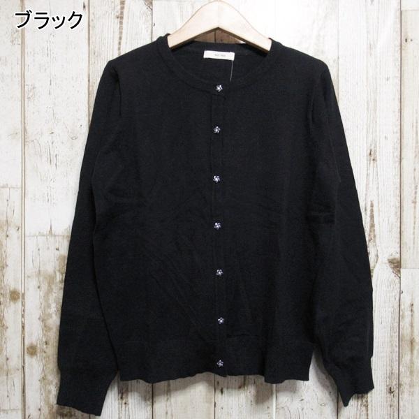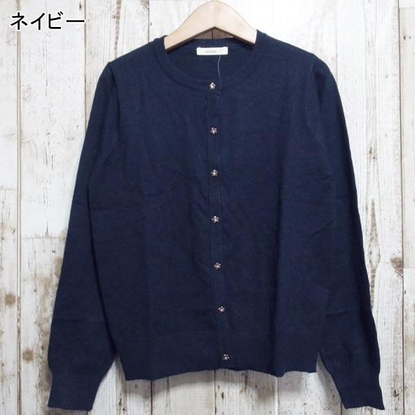 カーディガン 花ボタン レディース Uネック 長袖 シンプル オフィス 伸縮性 送料無料