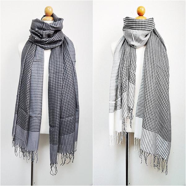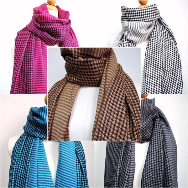 ボーダー柄&千鳥柄が一つになったパシュミナ100%の上質マフラーです♪