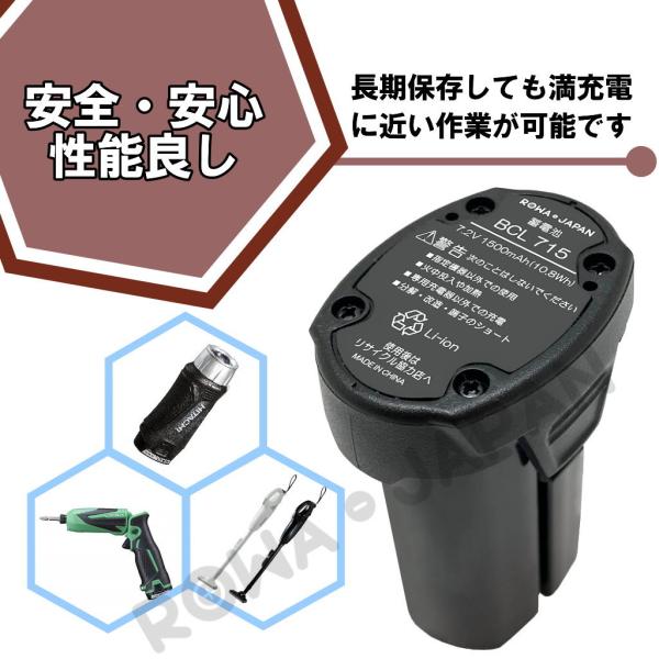 【互換品】 HiKOKI対応 BCL715 7.2V 差込式 バッテリー R7DA R7DL対応 日立工機対応 電動工具 コードレスクリーナ 用 ロワジャパン