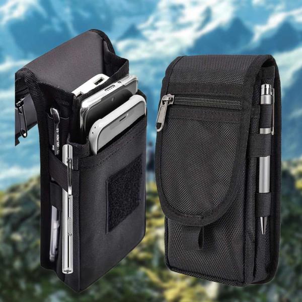 ポーチ ベルトクリップ付 ナイロン素材 ホルスターケース ペンホルダー カラビナ 3つのコンパートメント 飛行機 海外旅行などにも 貴重品