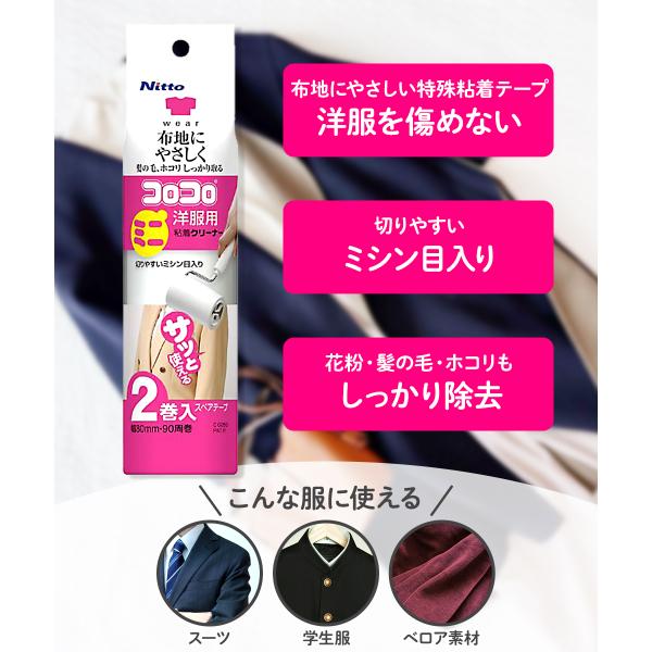 コロコロ ミニ スペアテープ 洋服用 4巻入 ニトムズ | 粘着テープ 抜け毛 お手入れ 髪の毛 ほこり ホコリとり 猫の毛 ペットの毛とり 新生活 犬の毛とり コロ
