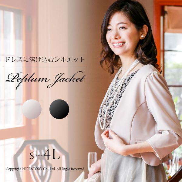 ドレス用ボレロ ペプラム ショート丈 ボレロ ジャケット 大きいサイズ 袖あり ショートジャケット 羽織物 黒 ベージュ シャンパン 結婚式 母親FJ-004242