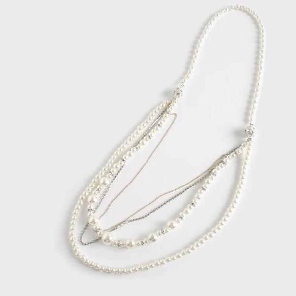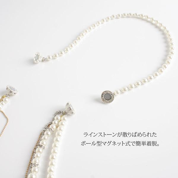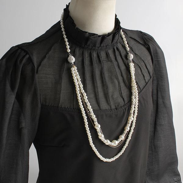 上品な艶感をもつパール、重なるビジューは繊細な輝き、レイヤード3wayネックレス。