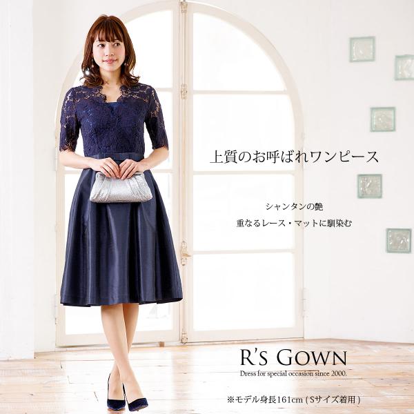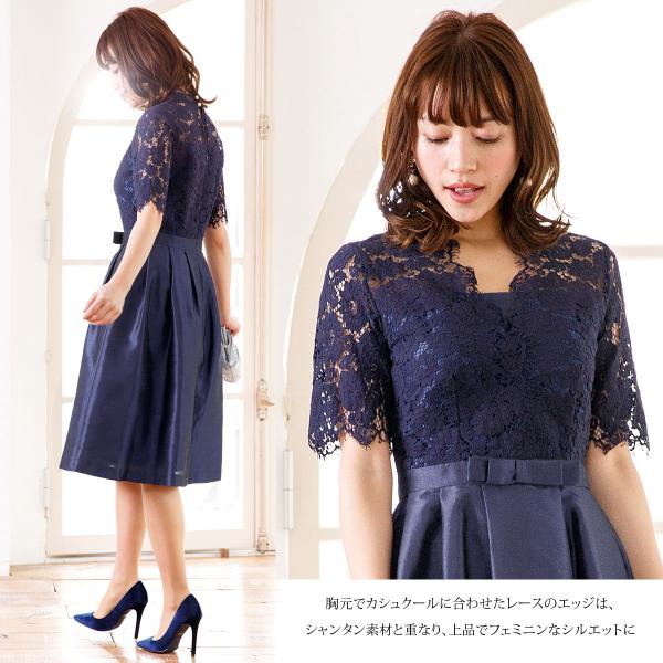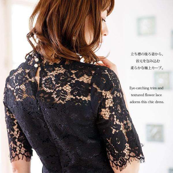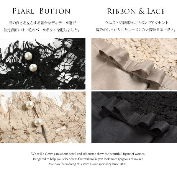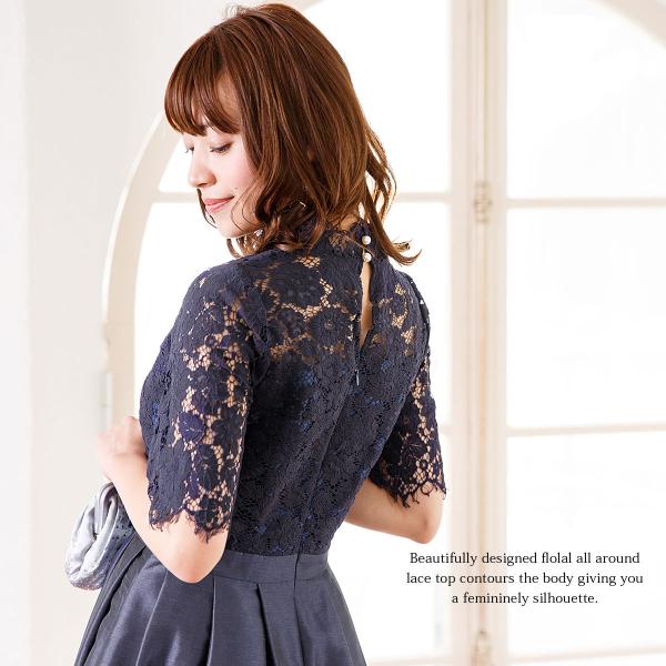 繊細美なレースが首元で優しく、女性らしさを感じる“デコラティブレース”のワンピースドレス。