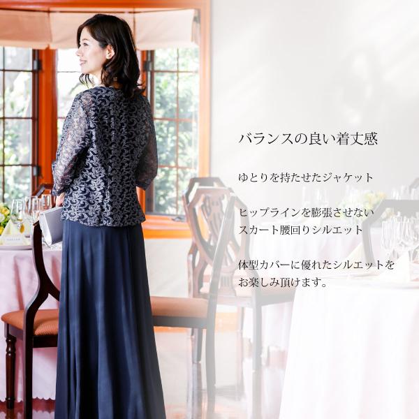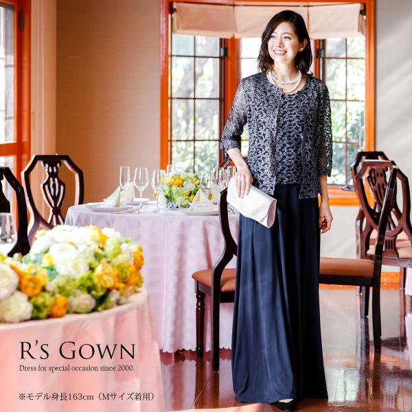 ドレス 結婚式 演奏会 アンサンブル セット ロングドレス 母親 ジャカード 高身長 トール 袖あり フォーマル FD-052566-set