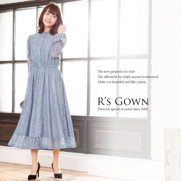 ロングドレス ワンピース レース 結婚式 パーティ― 演奏会 発表会 ステージ 長袖 フォーマル ピンク ネイビー FD-1852262