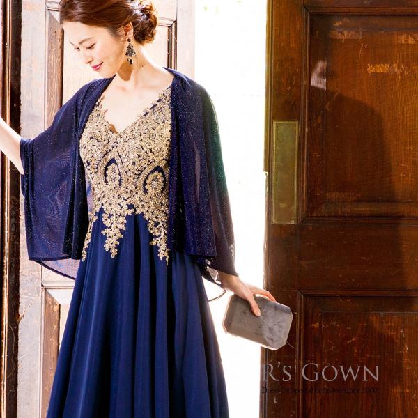 ロングドレス 結婚式 母親 親族 マザーズドレス 家族 フォーマル ジャケット アフタヌーン 袖あり 演奏会 声楽 舞台 ネイビー FD-180092