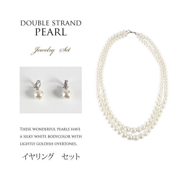 ネックレス イヤリング セット パーティーアクセサリー レディース 謝恩会 卒業パーティ 成人式 同窓会 結婚式 2連パール AC-100769