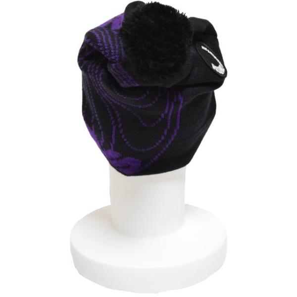 スノーボード スノボ ニット帽 ボンボン ビーニー(黒/紫/パープル)ブランド/ロゴ/キャップ/帽子/レディース/メンズ/人気(ROUND.)