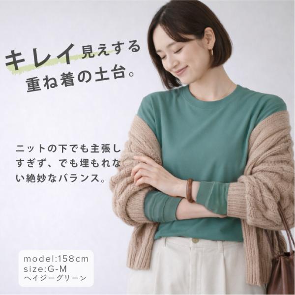 首回り狭めで、胸元も安心カットソー。セーターのインナーなどにもぴったりなロングティーシャツ。