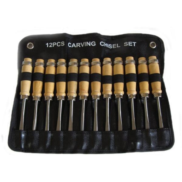 彫刻刀 ノミ 12本セット DIY工具 のみ カービングナイフ 木工 木彫 収納袋付き 荒削り