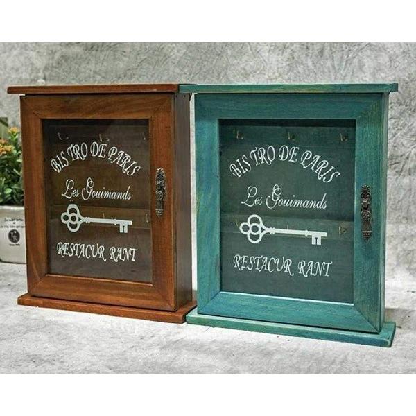 アンティーク 懐かしい 雰囲気 壁掛 キー ボックス ウッド(茶)木製 キーケース 小物 鍵 収納