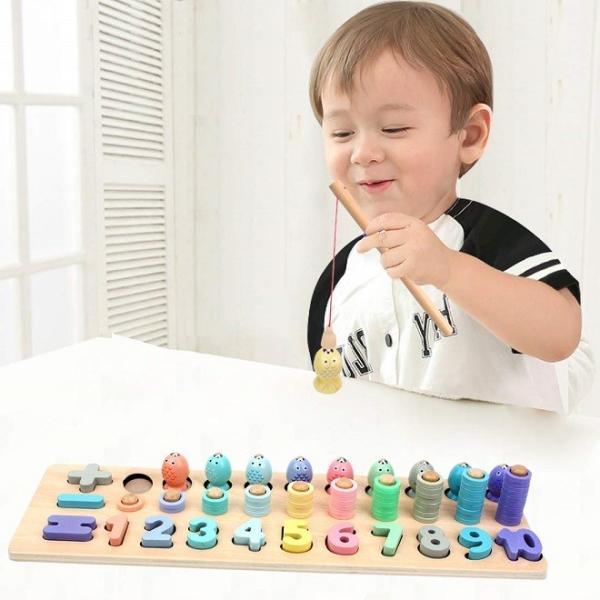 知育玩具 釣りおもちゃ (魚釣り) モンテッソーリ教育 木製 積み木 パズル