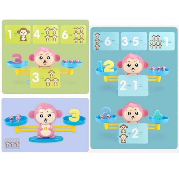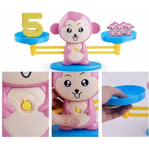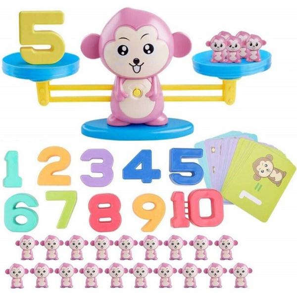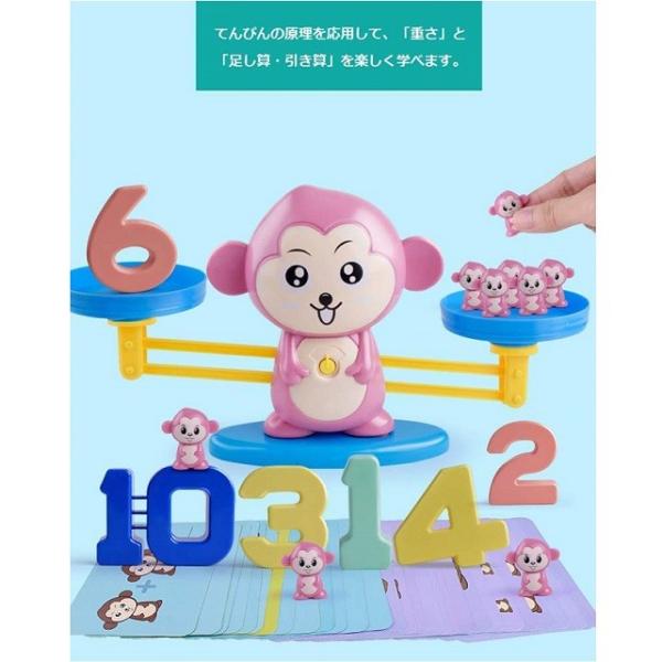知育玩具 てんびん バランスゲーム 子供 おもちゃ(猿 ピンク)幼児 天秤 数字 重さ