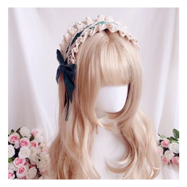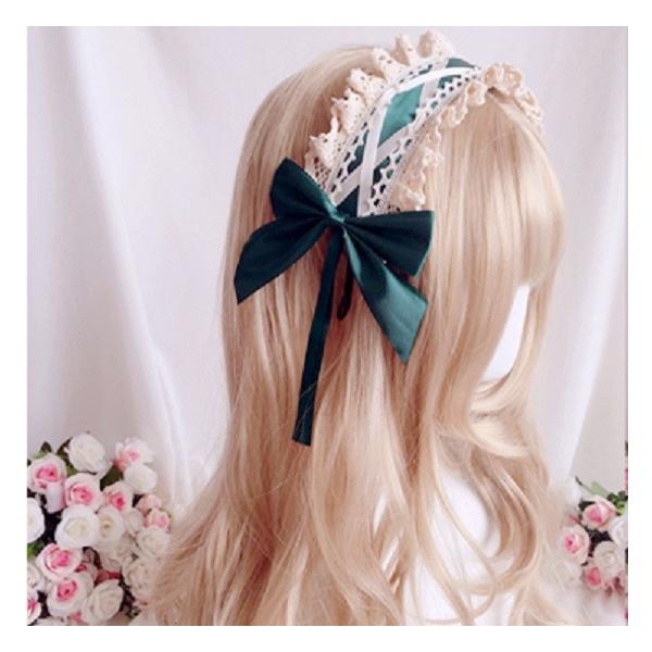 ロリータ カチューシャ メイド ゴスロリ ヘッドドレス 髪飾り レース(緑) <メール便で発送>